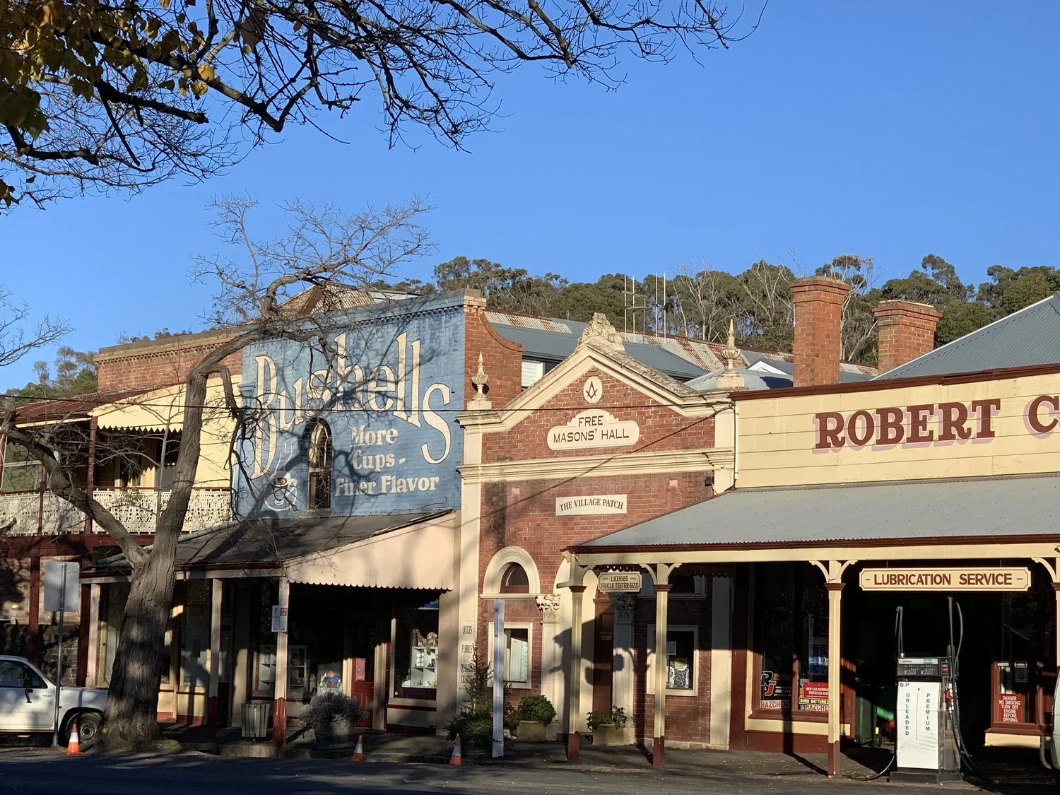 It's pretty hard to take a bad picture in Maldon, from the gorgeous old pubs like the Kangaroo Hotel, to the beautifully restored Morris sitting out side the hardware store, to the flaky paint of the Bushell's Tea sign that still adorns the entire 2-storey side of the general store. You know it’s an historic centre when even the public loo is stunningly beautiful. Capping it off is the surprising warmth of the midwinter sun that breaks through the clouds as we drive into town. It's certainly worth the stop.